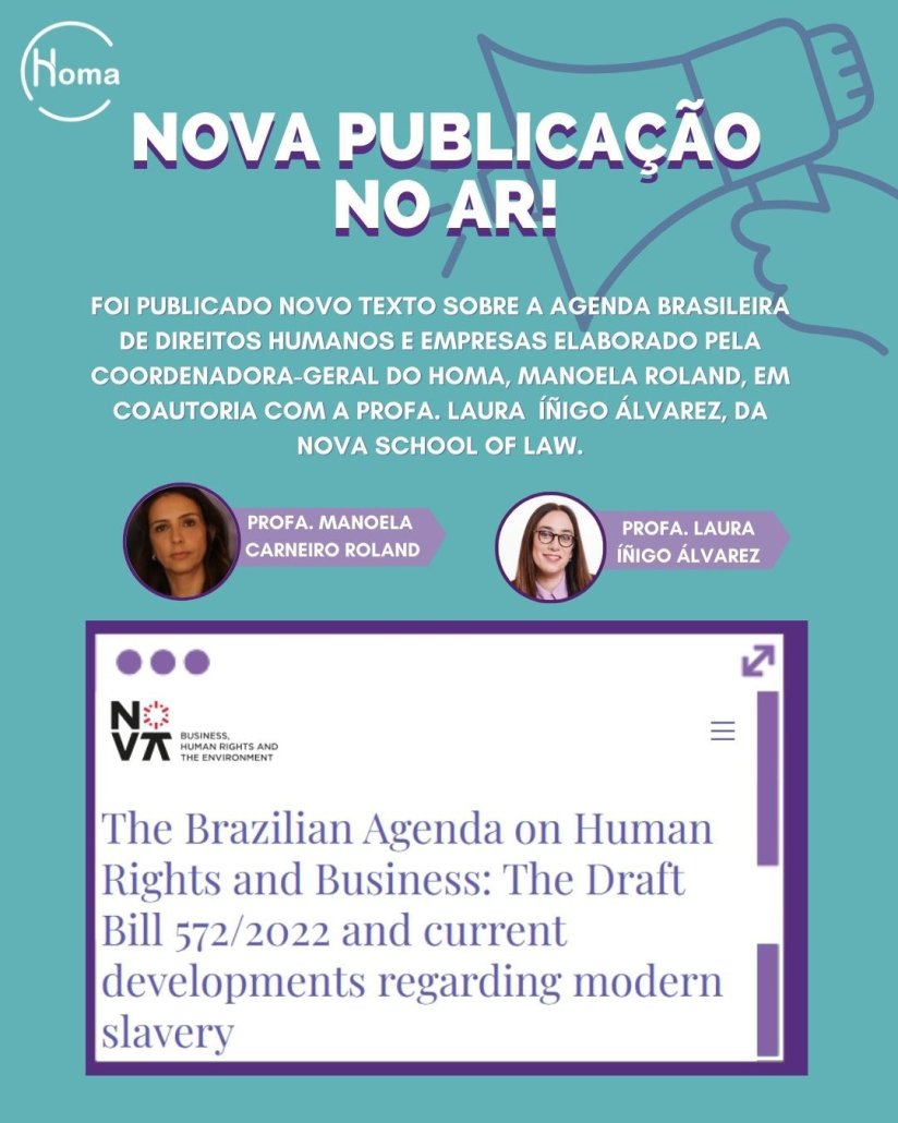 🖥️ New Publication | A new text authored by Homa’s General Coordinator, Manoela Roland, in co-authorship with Professor Laura Íñigo Álvarez from NOVA School of Law, on the Brazilian Agenda on Business and Human Rights, is now available.